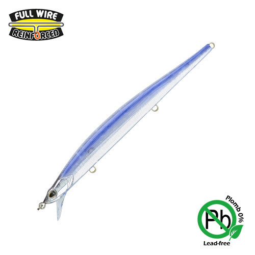 Minnow coulant de type « slow sinking » pour la pêche en mer – Action de « rolling » marquée – Finition réaliste – Montage Full wire – Transfer de masse magnétique – Lests interne en acier inoxydable / 0% de plomb