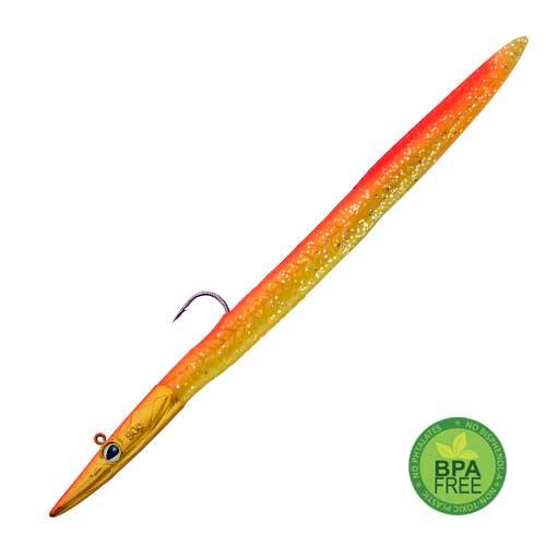 Leurre souple type lançon pré-armé – 1 leurre Prêt à pêcher (leurre souple monté sur tête plombée) 1 leurre souple de rechange – Tête plombée profilée – Silhouette réaliste – Attractant anis – PVC non toxique, sans phtalates ni Bisphénol A