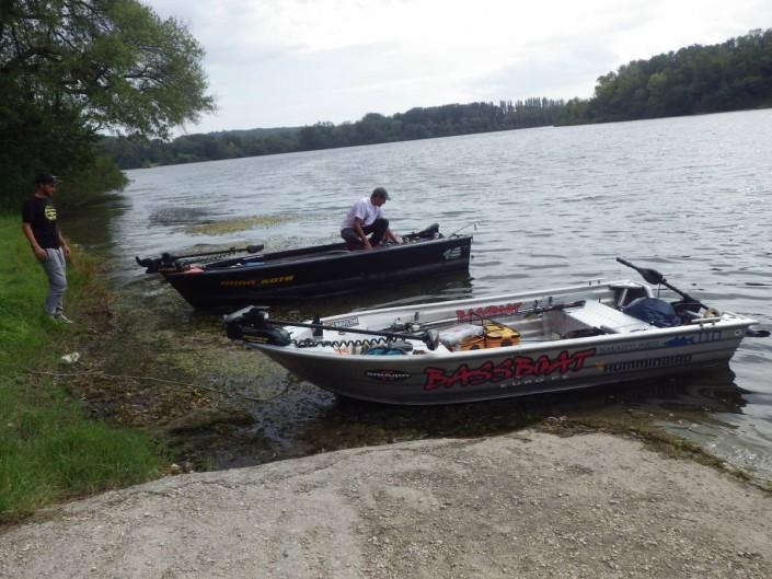 Aujourd’hui, j’ai rendez-vous à Caderousse avec Sébastien, Quentin et Nicolas. Ce dernier sera avec moi sur la Smart Liner 3,50 m. Le temps est à l’orage, les éclairs ne sont pas loin et la pêche s’annonce dure ! Sur la route, Sébastien m’avait proposé de faire une « petite battle » entre amis. Du coup, pour lui faire plaisir, alors que nous mettons les bateaux à l’eau, j’annonce « COMPET » !
