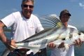 Nous arrivons sur l’eau au lever du jour, le niveau est très bas et le débit très faible ce qui ne nous facilite pas la tâche. En principe, lorsque le niveau et le débit sont supérieurs à la normale, cela rassemble les « Bait Fish » (poisson fourrage) qui se mettent naturellement à l’abri du courant et ce qui permet donc de localiser plus facilement les beaux sujets. Là, c’était tout l’inverse et cela allait être plus compliqué. Mais motivés comme d’habitude, nous partons prospecter plusieurs postes qui nous semblent poissonneux.