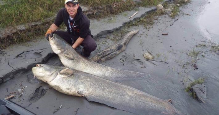 Dans la matinée nous sortons 9 silures entre 2.05 m et 1.60 m. Un bon moment entre père et fils.